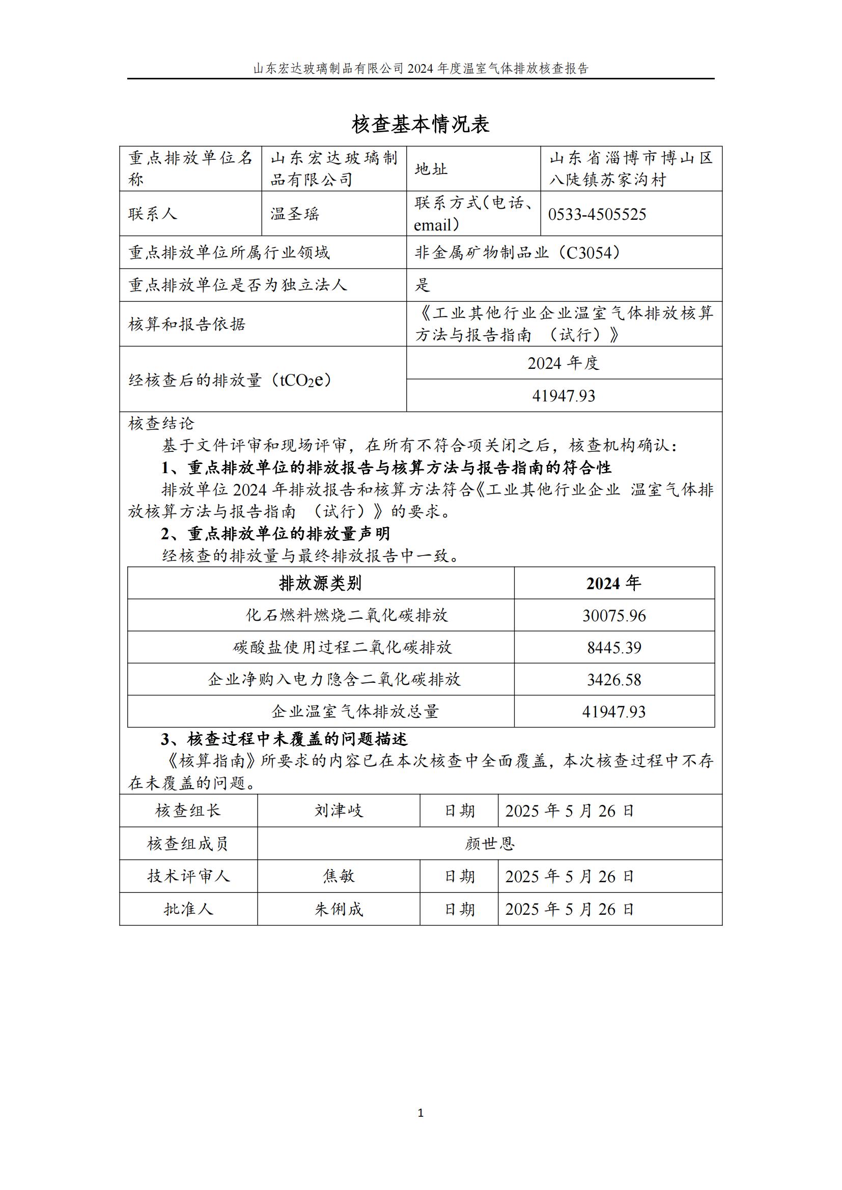 山東宏達(dá)玻璃制品有限公司2024年度溫室氣體排放核查報(bào)告